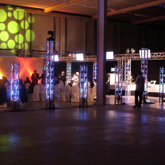 Zu einer Konferenz zum Thema „Softwareentwicklung“ waren wir neben der Tagung auch für das Gala-Dinner am Abend verantwortlich. Mit zahlreich beleuchteten Truss-Stelen und vielen anderen Lichteffekten verwandelten wir eine 1000qm große Lagerhalle in eine glänzende Location mit beeindruckender Atmosphäre.