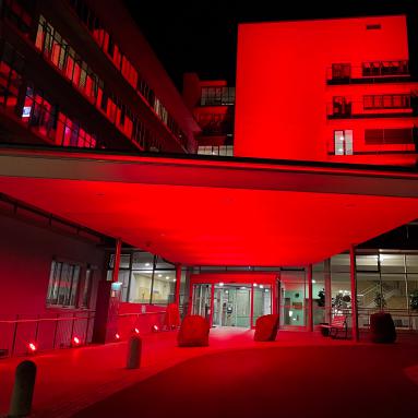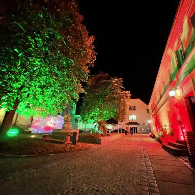 Unser Auftrag: Die Fassaden der Häuser in Marktredwitz und Selb sollen in rotem Licht erstrahlen.