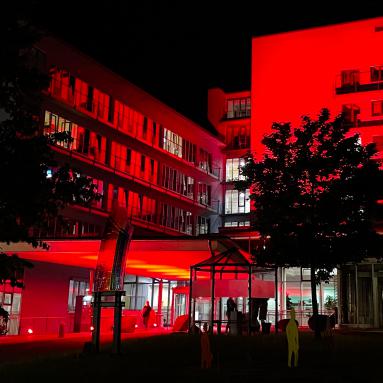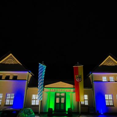 Unser Auftrag: Die Fassaden der Häuser in Marktredwitz und Selb sollen in rotem Licht erstrahlen.